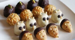 Per decorar els panellets podeu utilitzar ingredients com: pinyons, ametlla picada o tallada a tires, avellanes, fruita confitada, xocolata, coco…